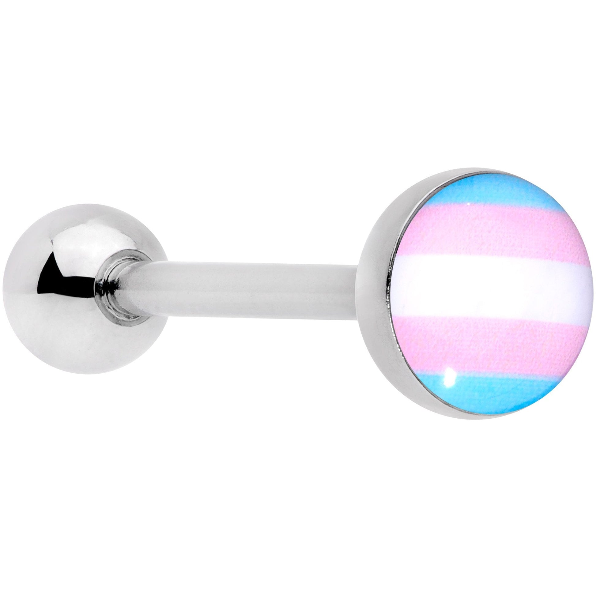 Pink Blue White Transgender Pride Flag Barbell Tongue Ring
