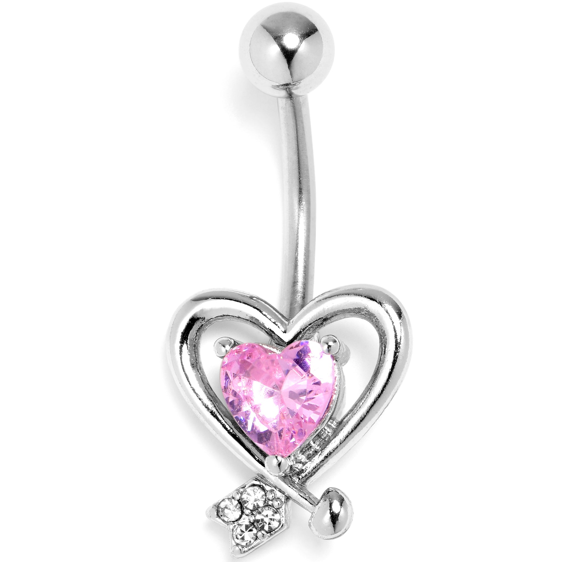 Open your heart to style when you fall in love with this 14 gauge navel ring. It is made with a 3/8 inch 316L surgical grade stainless steel curved barbell with a 5mm top ball end. The bottom end features a heart charm with an open design, set in the center with a pink cubic zirconia gem. It also features a clear cubic zirconia gem at the bottom end for added style. Get ready to love this opulent belly piercing jewelry.Specifications