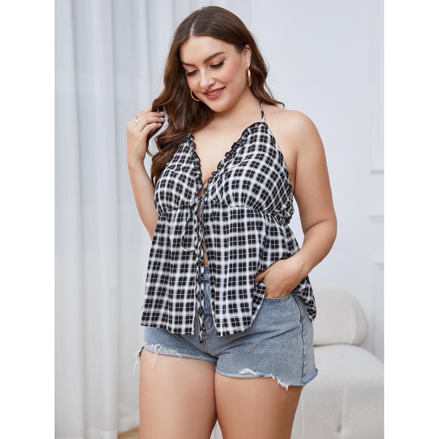 Plus Size Women's Summer Tube Top Plaid Shirt