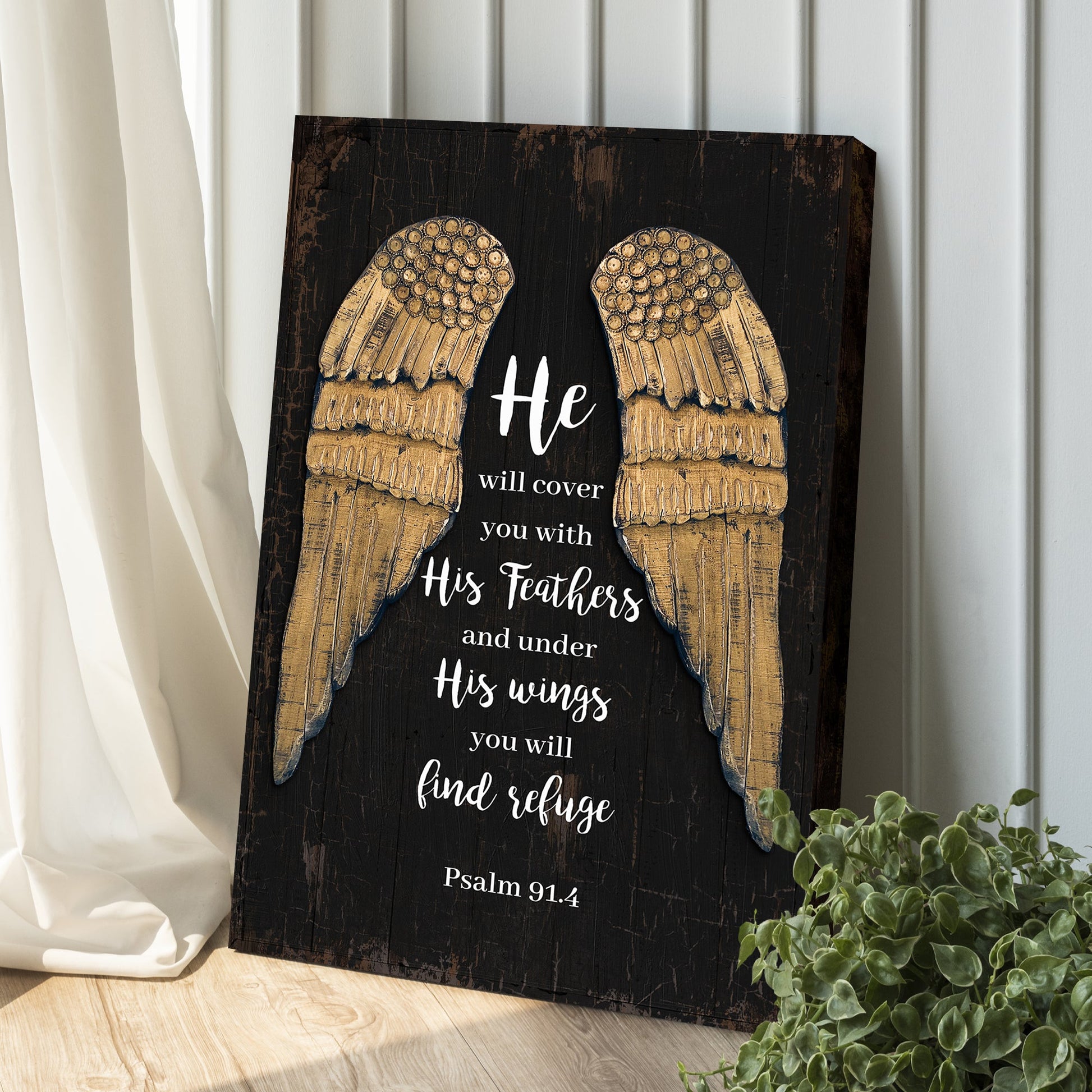 You should get this Psalm 91:4 He Will Cover You With His Feathers Wall Art because it is the perfect way to show your love for God and his Word! Not only will you be able to display this sign in your home, but it can also be used as a reminder of God's protection during times of trouble.