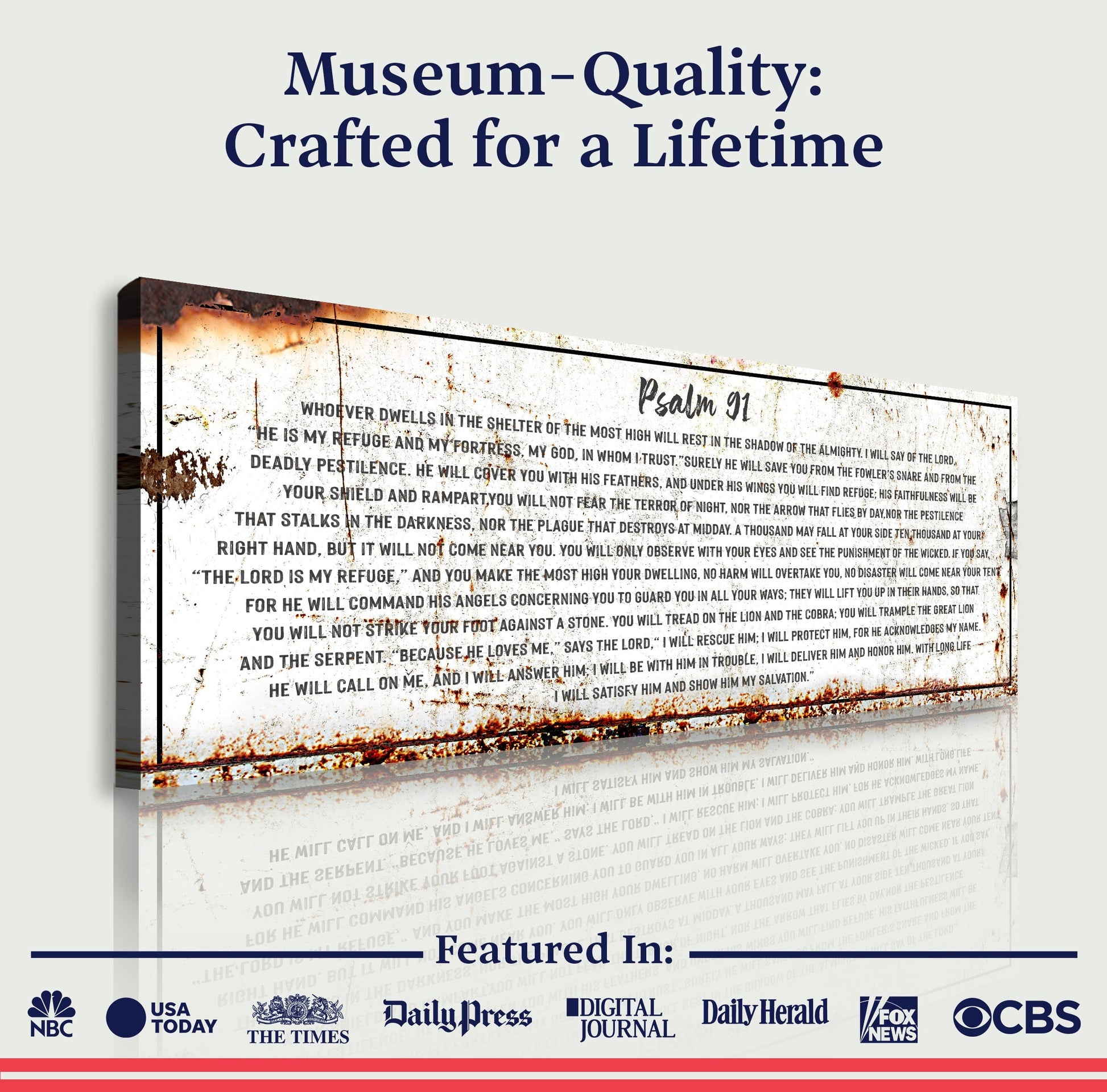 Bring this inspirational piece into your home and let the comforting words of Psalm 91 uplift everyone who enters.