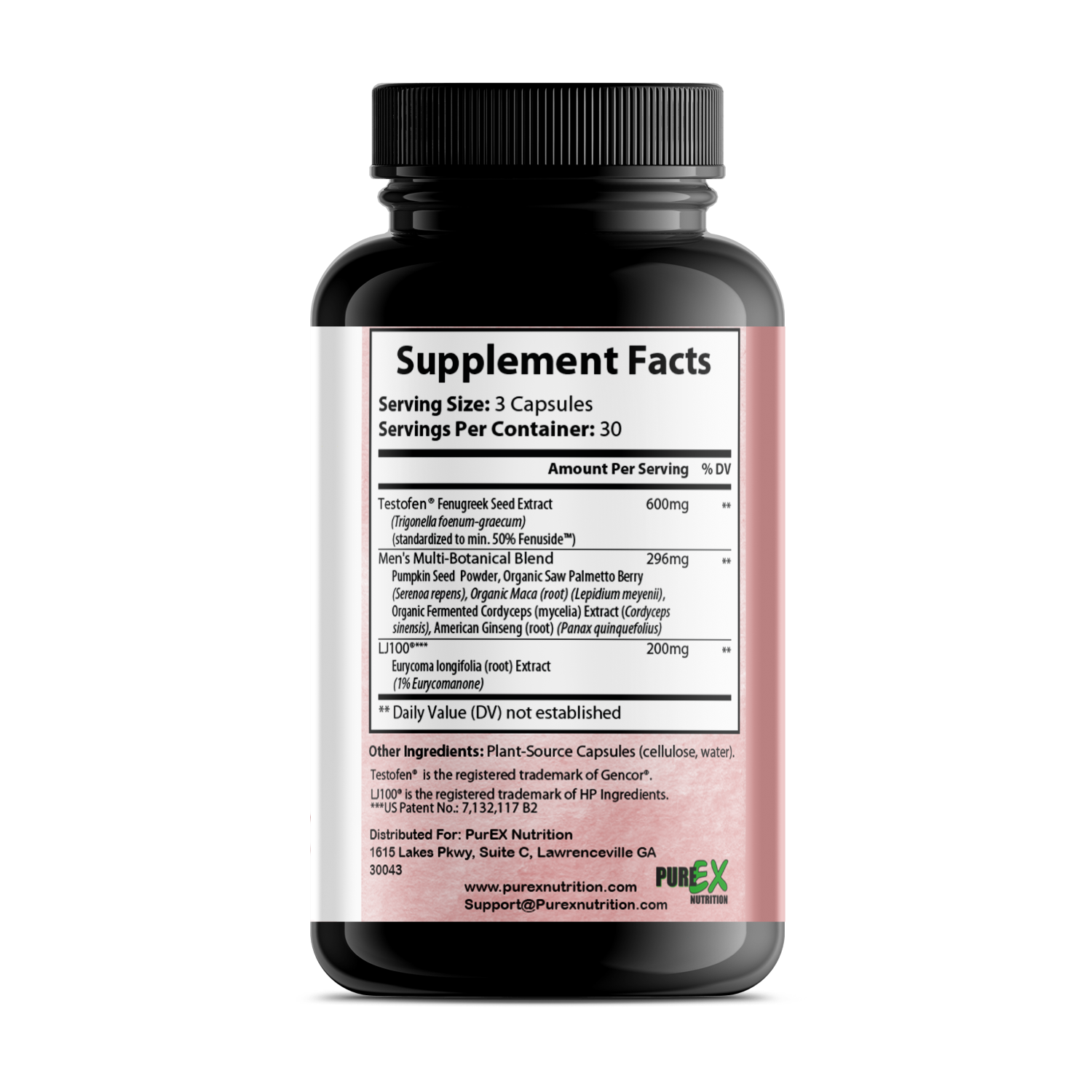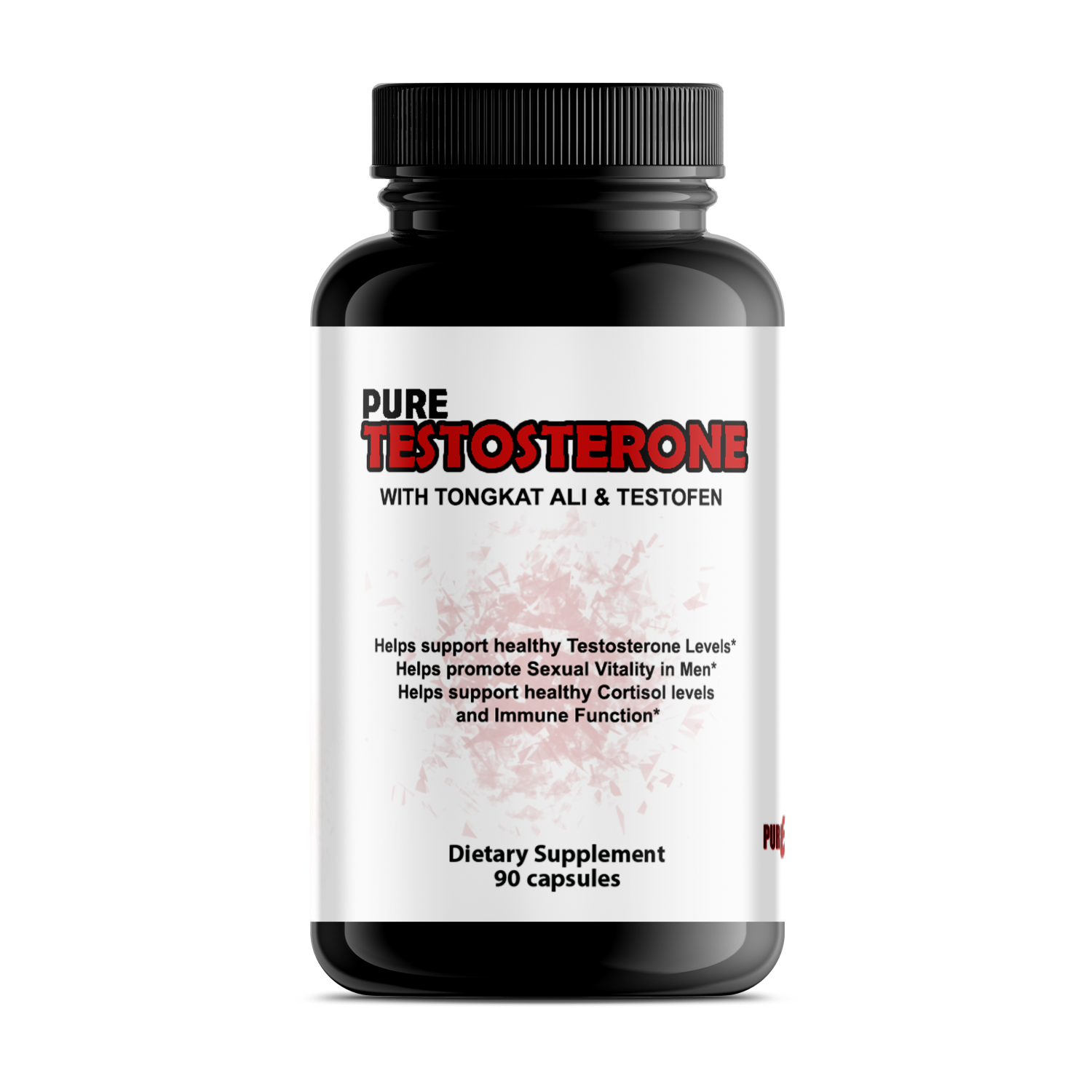 Pure Testosterone contains Tongkat Ali(LJ100®) is a patented adaptogenic nutraceutical, scientific backed with 15 clinical studies. We added Tongkat Ali to help regulate stress hormone and free up more testosterone. Tongkat Ali has been shown to help reduce stress hormone levels(cortisol), which is a hormone that opposes testosterone. Tongkat Ali has also been shown to help free more of your total testosterone by releasing more free testosterone from SHBG(sex-hormone-binding-globulin). LJ100 is an extract of Longjack (Eurycoma longifolia) which has been shown to help support total testosterone levels via the HPG(hypothalamus-pituitary-gonadal) axis.