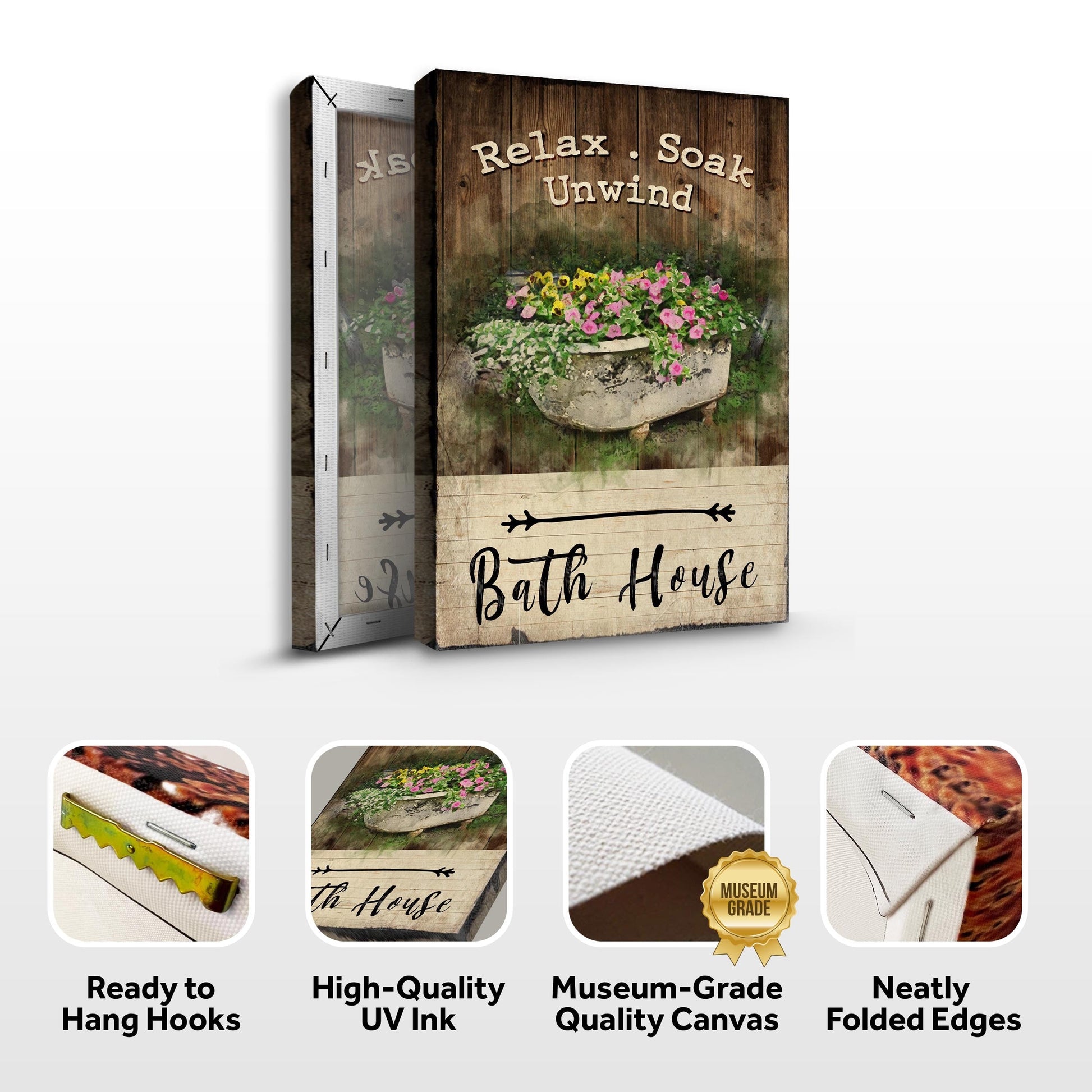 Unquestionably, one of the most significant spaces in a home is the bathroom. After all, that is where our days begin and end. However, sometimes restrooms might appear cold and antiseptic. Consider buying Relax, Soak, Unwind canvas wall art to enliven your room. After you add this gorgeous piece, your shower will be transformed into a chic haven.