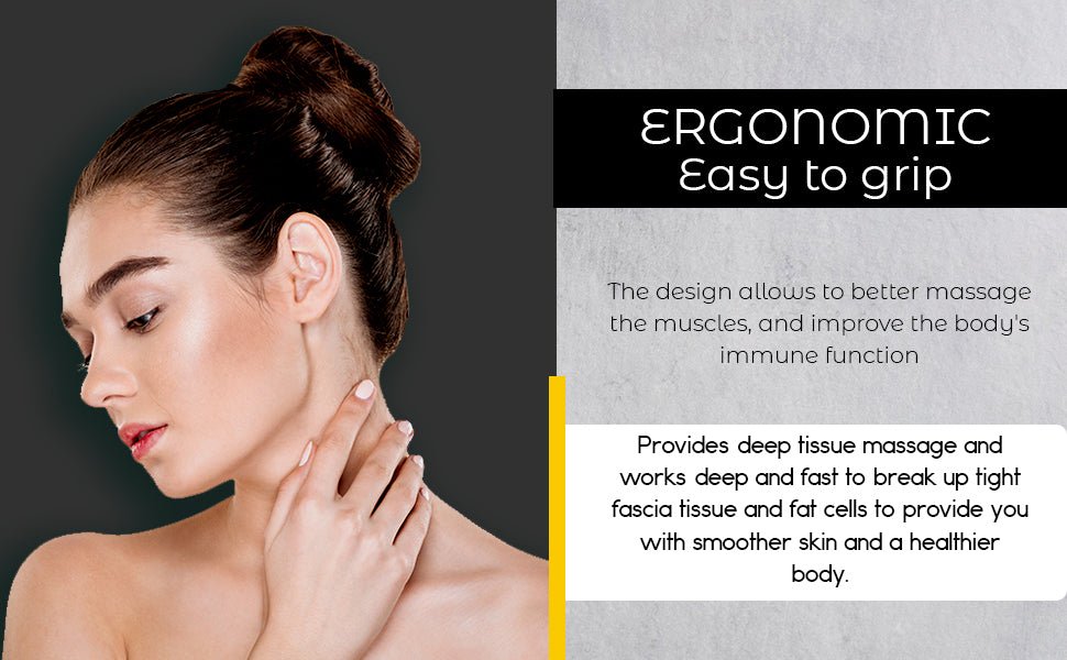 - ERGONOMIC. Easy to grip. The design allows to better massage the muscles, and improve the body's immune function, achieve the effects of decompression, repel fatigue, improve sleep. It helps relieve pain, soreness, aches, and knots. Increases blood circulation and reduces the risk of injury. Provides deep tissue massage and works deep and fast to break up tight fascia tissue and fat cells to provide you with smoother skin and a healthier body.