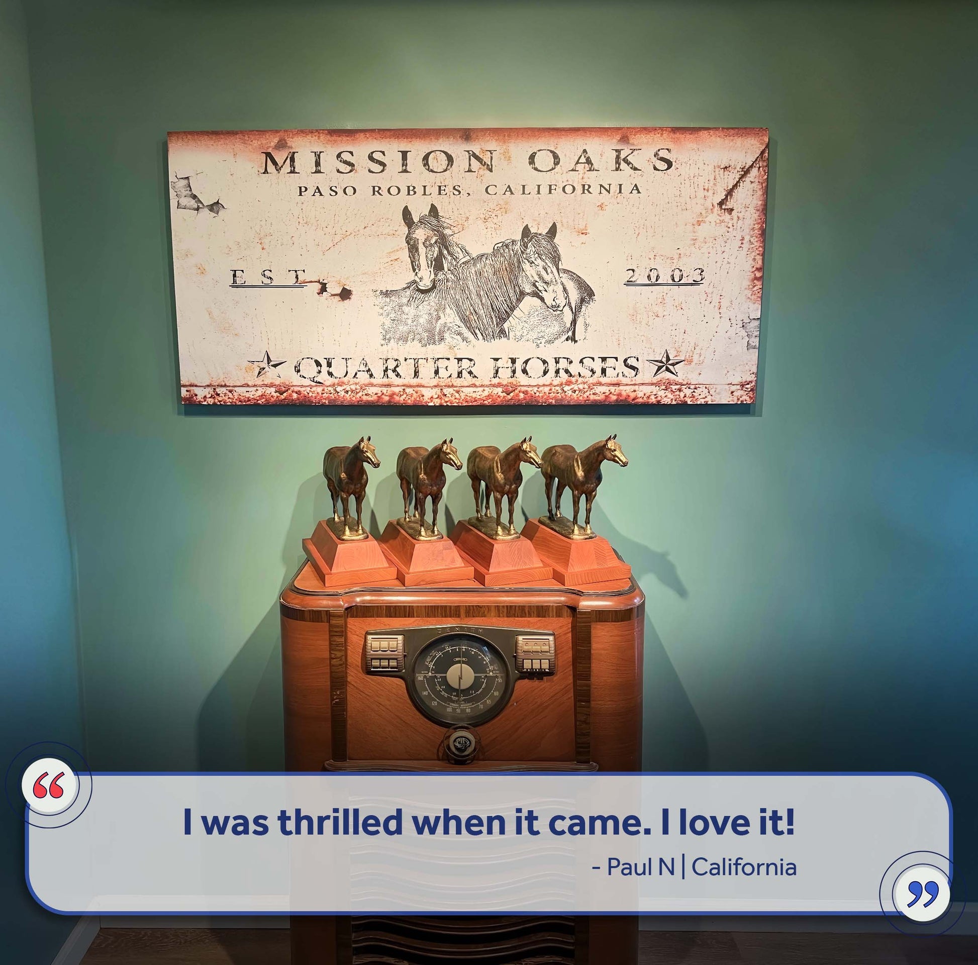 So, whether you're looking for a rustic horse ranch sign or rustic horse ranch wall art, we've got just what you're looking for. Enjoy the vintage art of our rustic horse ranch print on canvas!