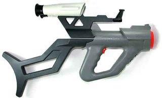 The Menacer is a light gun peripheral released by Sega in 1992 for its Sega Genesis and Sega CD video game consoles. It was created in response to Nintendo's Super Scope and as Sega's successor to the Master System Light Phaser. The gun is built from three detachable parts (pistol, shoulder stock, sights), and communicates with the television via an infrared sensor. The Menacer was announced at the May 1992 Consumer Electronics Show in Chicago and was released later that year. The gun was bundled with a pack-in six-game cartridge of mostly shooting gallery games.