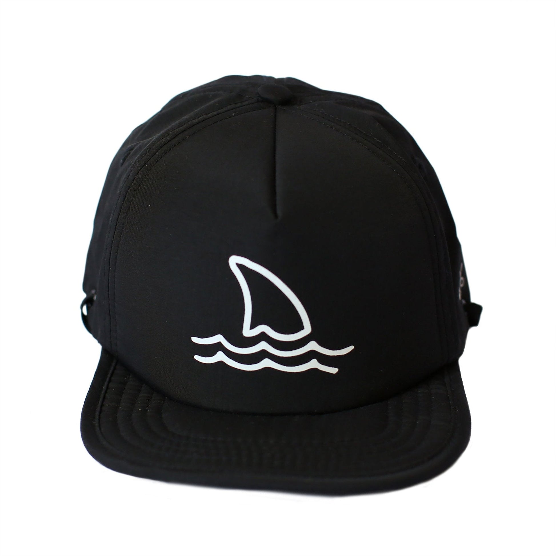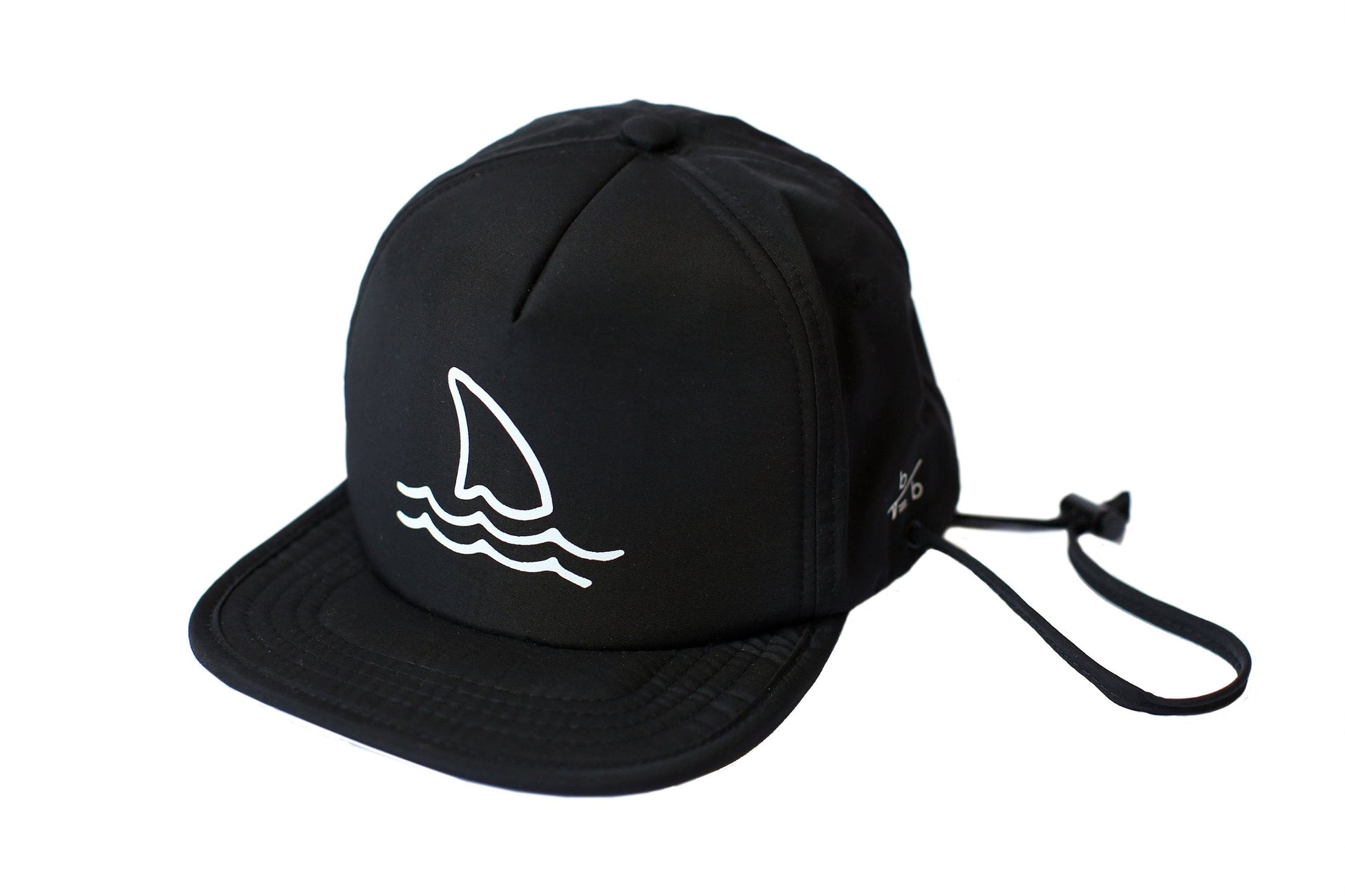 Our shark fin hat is gender neutral and perfect for any shark lover. The shark fin hat is all black with a white front logo.