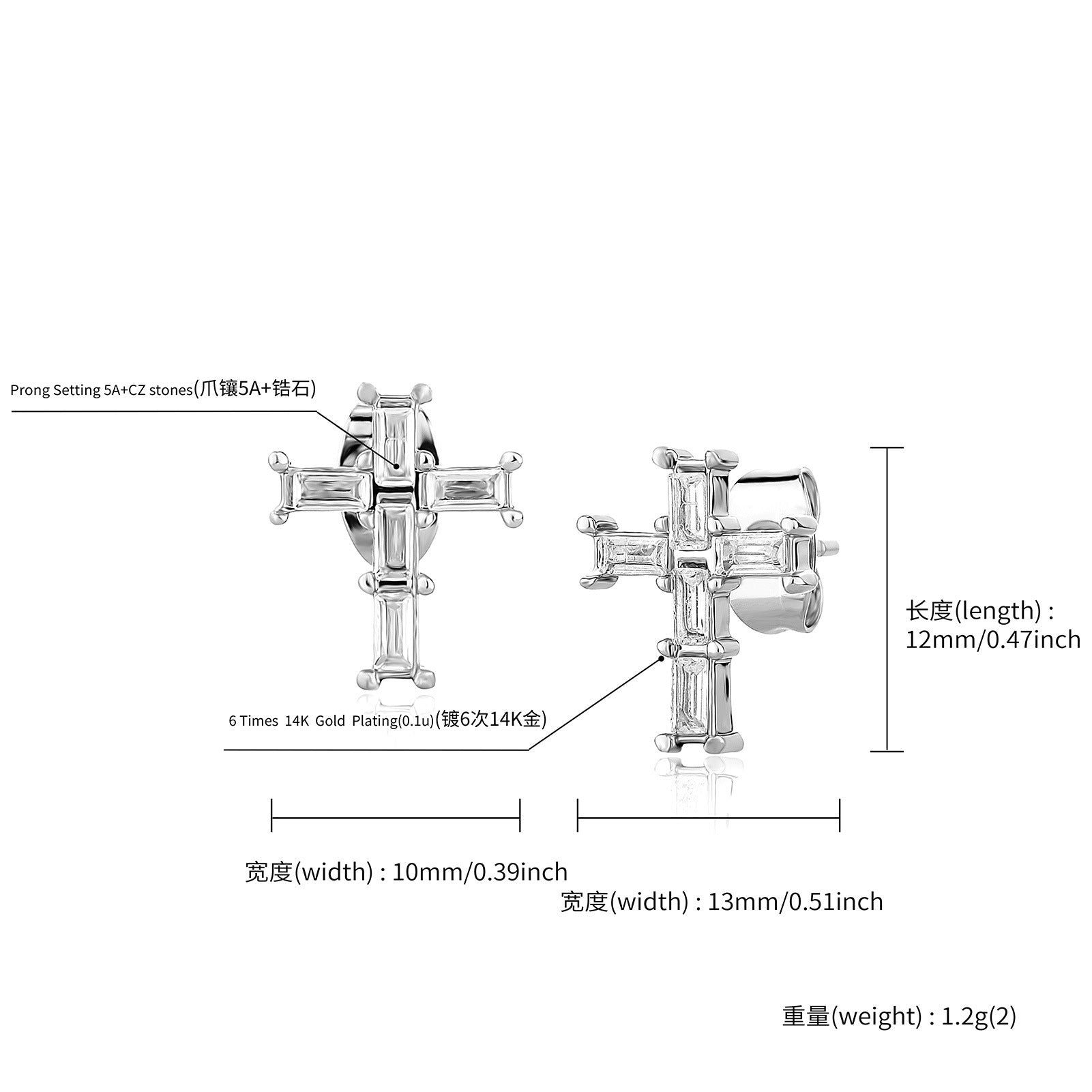 The earrings are made from high-quality copper, ensuring durability and long-lasting wear. With a micro inlay treatment process, the intricate design is not only visually stunning but also resistant to tarnishing. Available in several beautiful colors including classic Silver and glamorous Gold, these earrings cater to diverse style preferences. They also come in unique designs like the Silver Cross and Gold Cross, allowing you to express your faith and individuality effortlessly.