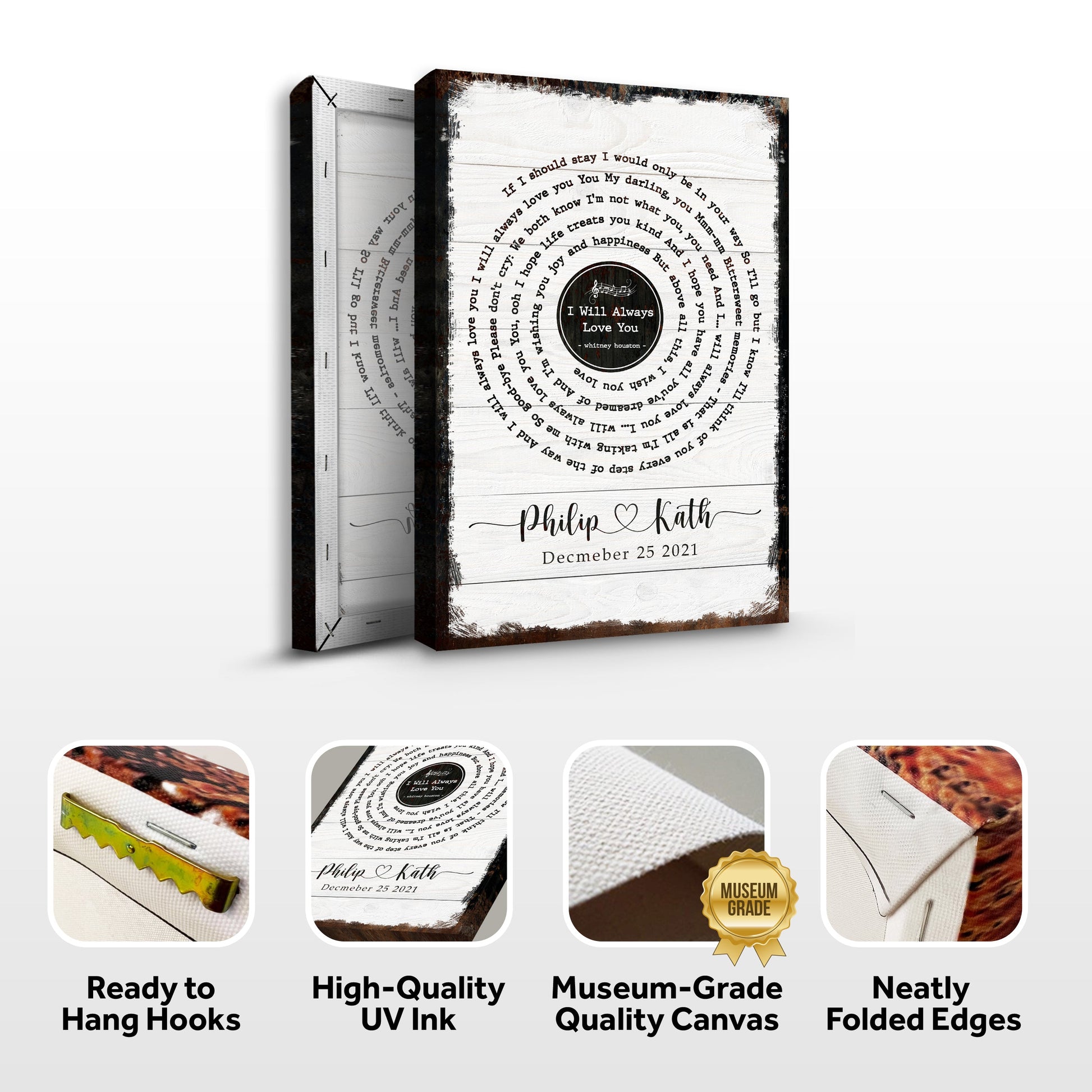 It has two designs, and three sizes to choose from that will add a personal touch to your space. Made of high-quality materials, it will last for years to come. Order now, and have your Custom Song Lyrics wall art ready to hang on your wall and add some fun personality to any room!