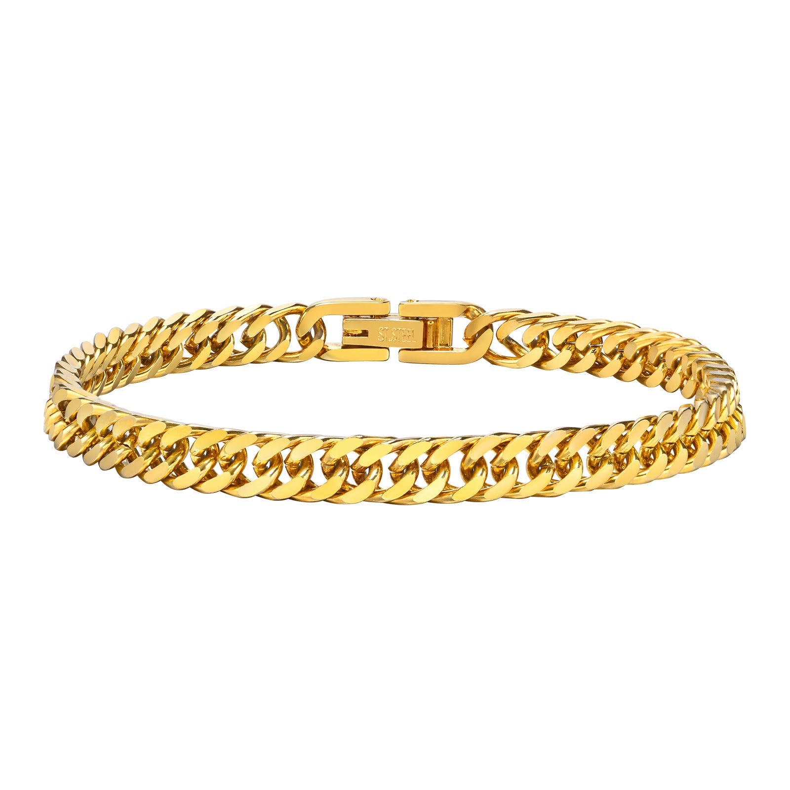 Introducing the Stainless Steel Punk Hip Hop Chain Double Woven Bracelet, a must-have accessory for anyone looking to enhance their style with a bold statement piece. Crafted from high-quality titanium steel, this bracelet not only promises durability but also a sleek and polished finish that will elevate any outfit. The electroplating treatment process ensures that the gold color remains vibrant and lustrous over time, making it suitable for everyday wear or special occasions.