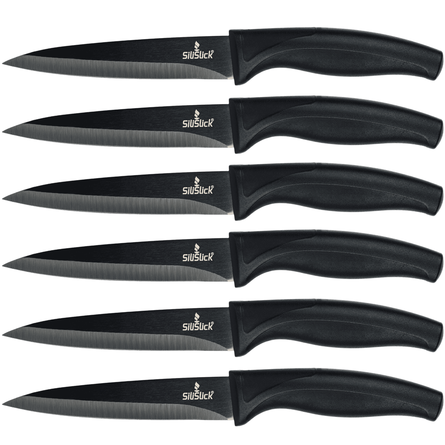 Steak Knife Set 6 Titanium Coated Black Handle, Black Blade