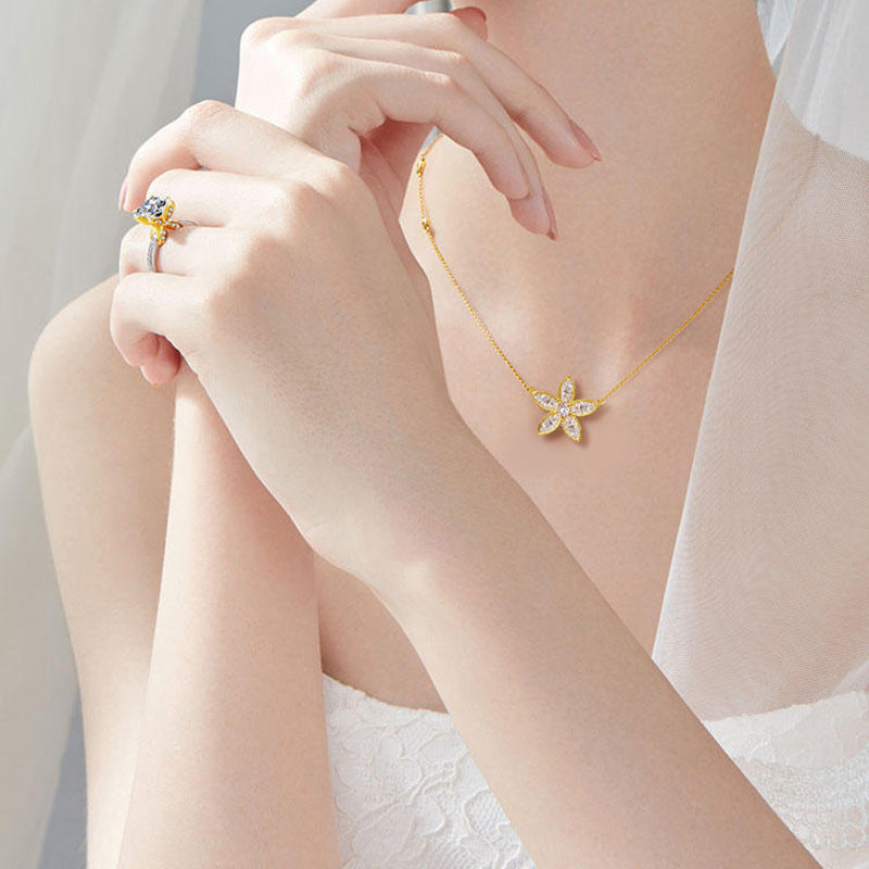 Discover the enchanting beauty of our Sterling Silver Rhinestone Flower Pendant Necklace, a stunning piece designed to elevate your jewelry collection. Crafted from high-quality 925 sterling silver, this necklace features an exquisite five-petal flower pendant that sparkles with delicate rhinestones. Each petal is intricately detailed, making it a perfect accessory for any occasion, whether you're dressing up for a special event or adding a touch of elegance to your everyday attire.