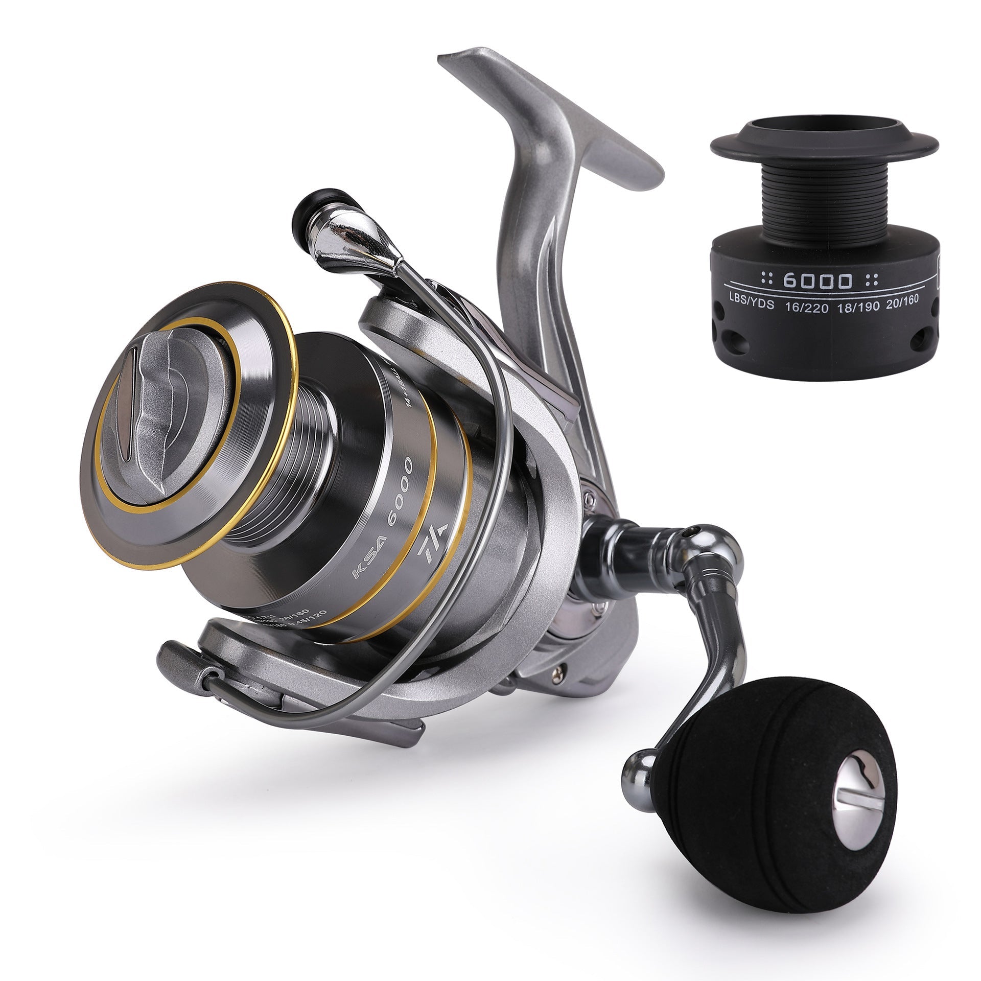 The product features a sturdy wire cup made from metal, ensuring longevity and resistance to wear and tear. The all-metal folding rocker arm adds convenience as it can be easily interchanged to suit either side, providing flexibility while you fish. The dual-axis spindle is designed without a backlash brake, ensuring smooth operation and allowing for a seamless line retrieval experience.