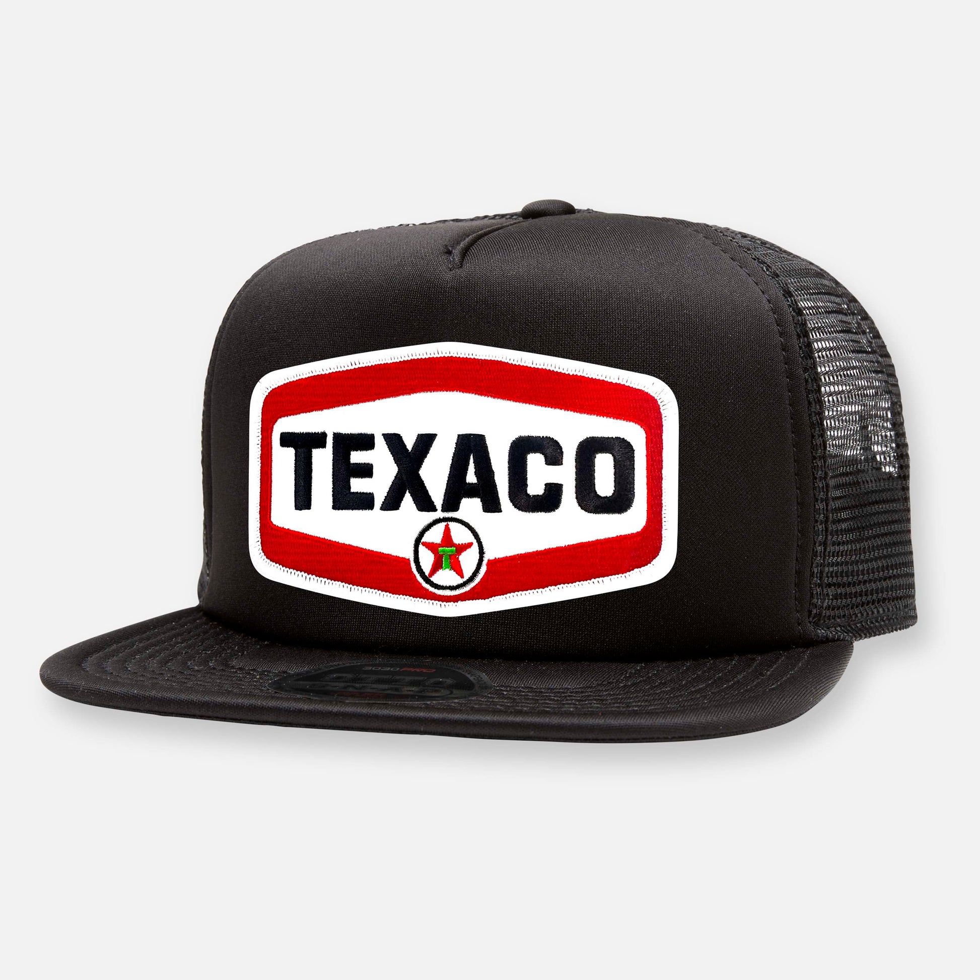 This epic new Texaco patch hat is part of our new Classic Trucker Hat Collection. This Flat Bill trucker hat features a big burly vintage Texaco patch sewn on the front panel. You can trust your car to the man who wears the star! Wear this crown of dominance every damn day and become a giant in a world packed full of gross little man babies.