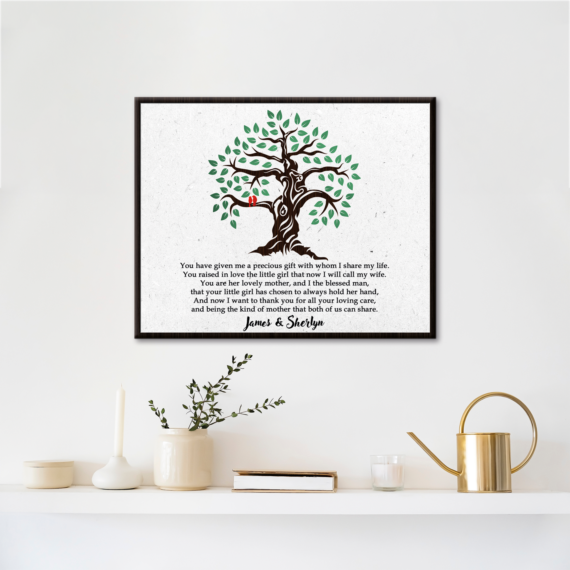 This Thank You, Mother-in-Law sign is the ideal gift option for your adoring mother-in-law to show her how much you value how she nurtured your lifetime partner to be the man he is today. Make it more special by adding your and your spouse's name on the Thank You, Mother-in-Law canvas print.