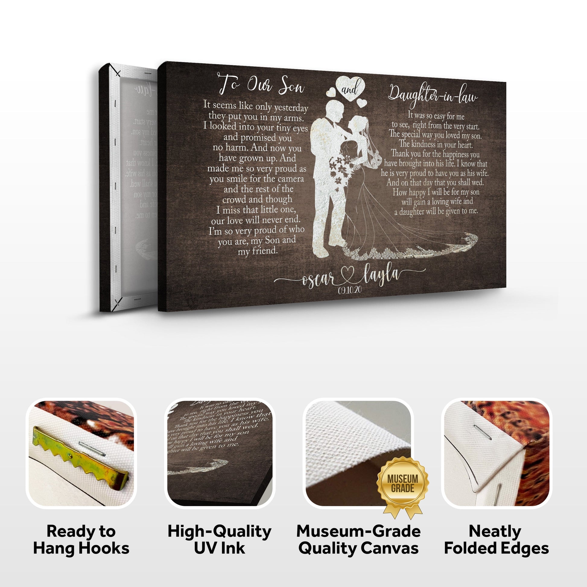 Not to mention, it's made from sturdy canvas that'll give the piece durability, so it lasts for years - even when presented outdoors! Adding this unique To My Son And Daughter In Law Wall Art to their home will remind them of your support and unconditional love every time they see it.