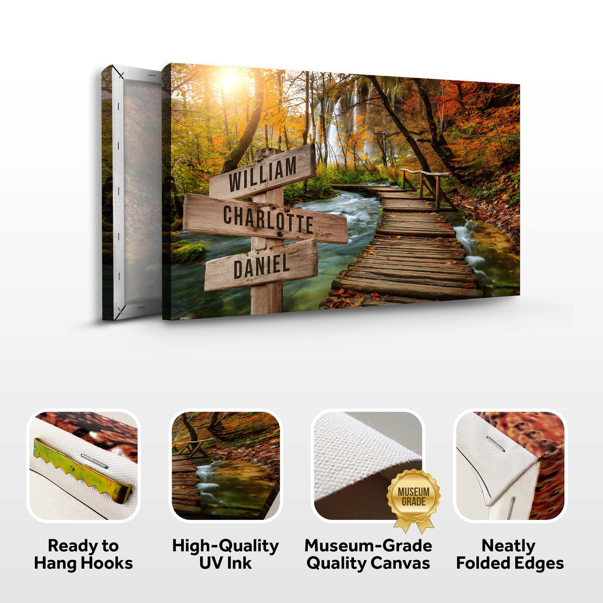 You can customize the Family Names canvas print with your choice of words and names, as well as the image you want in the background. The fonts used and the color scheme are also customizable, so you can have something entirely different.