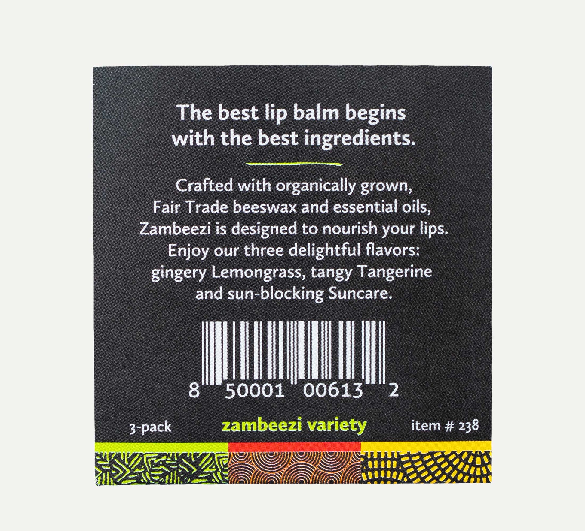 If your lips could kiss you, they would! The original Zambeezi lip balm has a wild gingery lemongrass flavor with organically grown, Fair Trade ingredients you will totally fall for.
