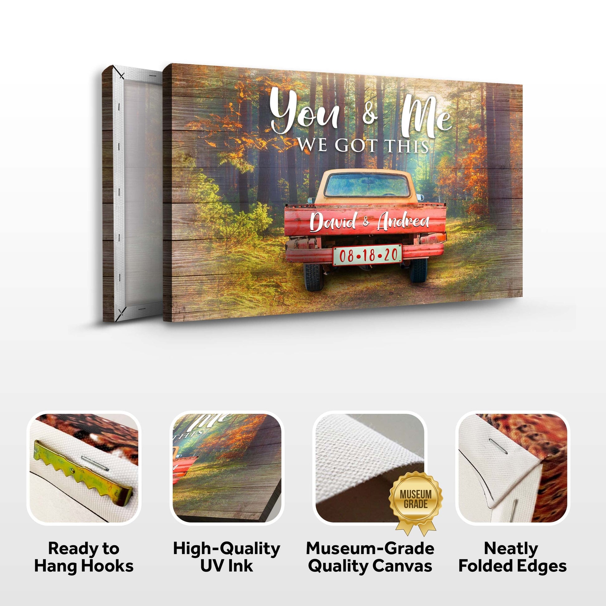 Make it special by adding phrases, pictures, designs, or color schemes. And if you know someone who enjoys the color red, consider giving them a We Got This Couple Red Truck canvas print as a present to show them how much you value them and to honor your shared passion and dreams.