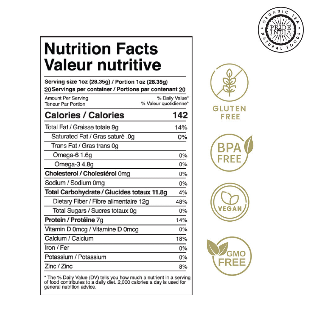 - High in Protein and Fiber : One of the richest sources of protein and fiber, chia whole food can be your healthy diet alternative. They have a balanced proportion of all the amino acids to give health in every bite. Add them to your breakfast cereal, pudding, smoothie, or salads and enjoy their tremendous benefits in your overall health. Per servings of whole chia seeds from Pride of India gives you 12 grams of fiber and 7 grams of protein.