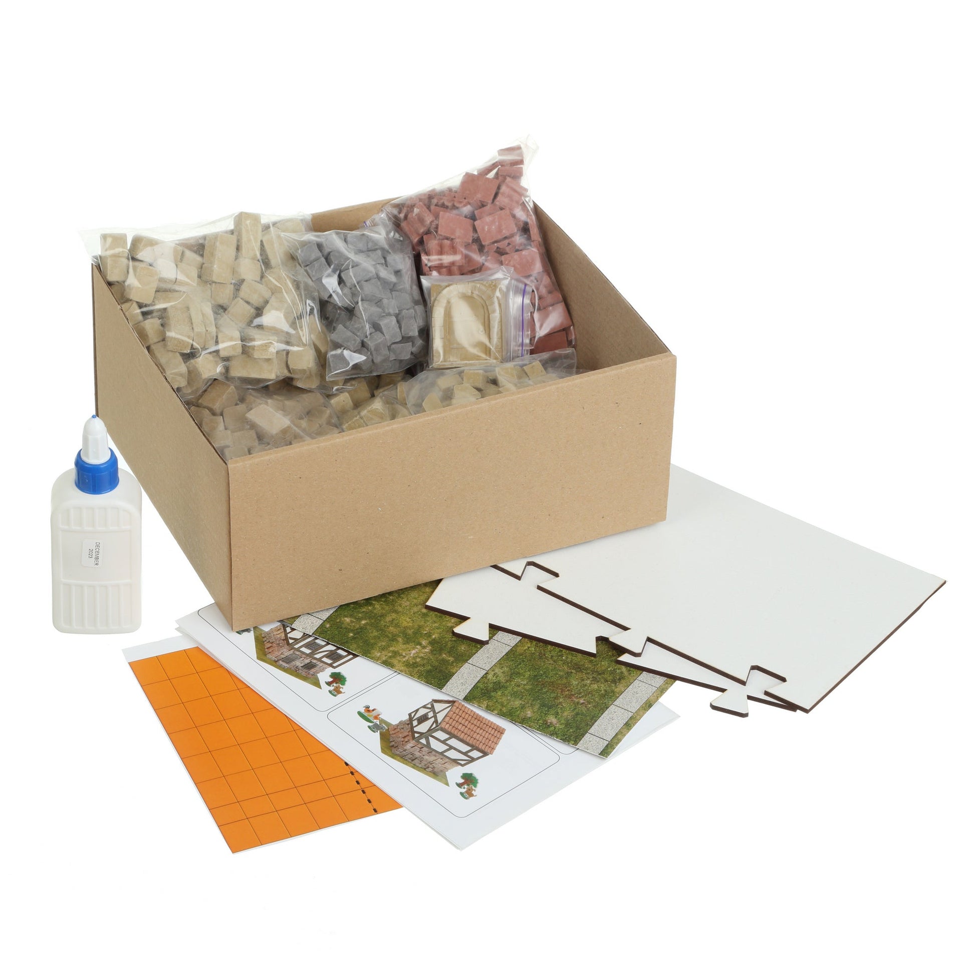 Small real-looking bricks and tiles are easily and firmly connected with safe non-toxic glue.