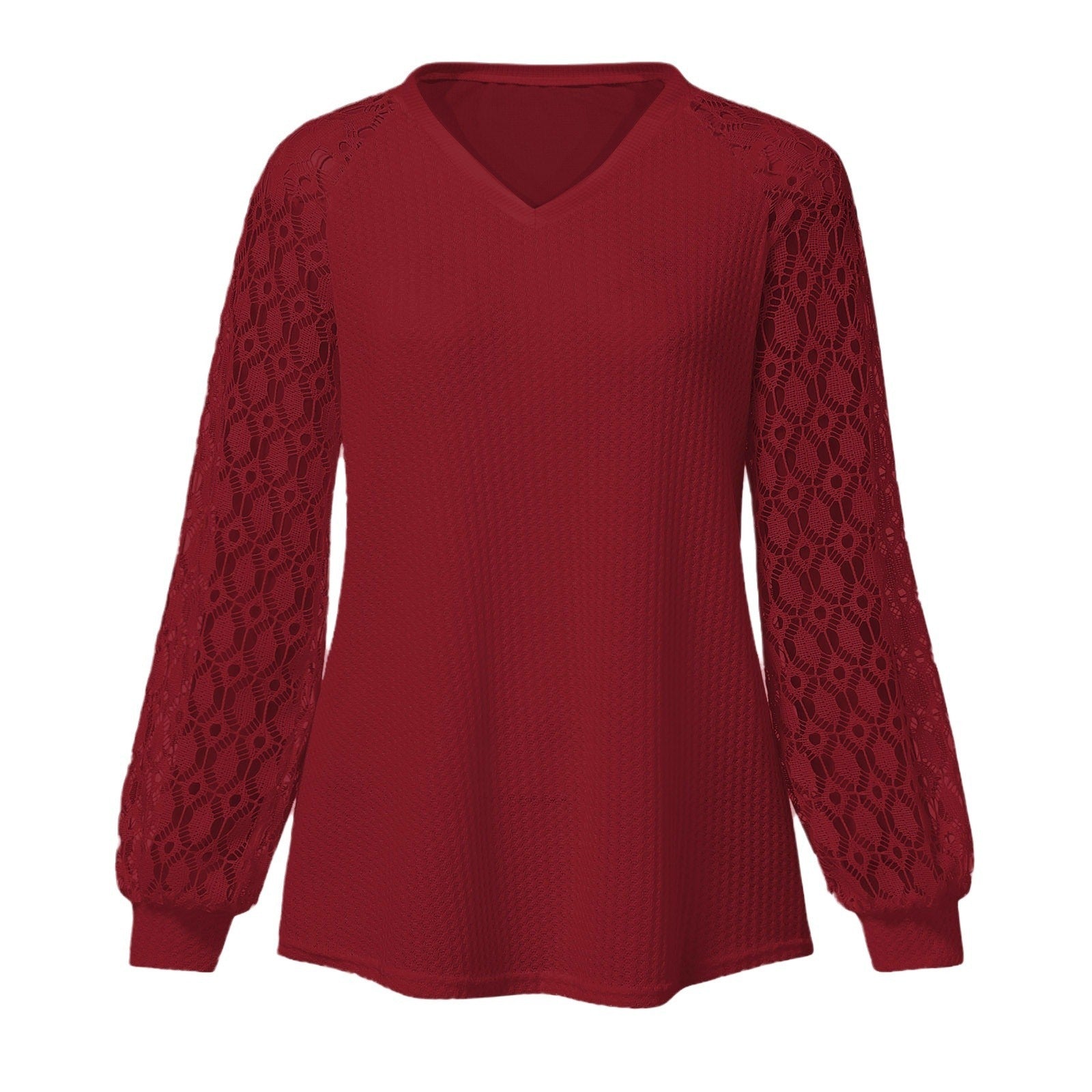 Women's V-neck Long Sleeve Lace Stitching Loose Shirt