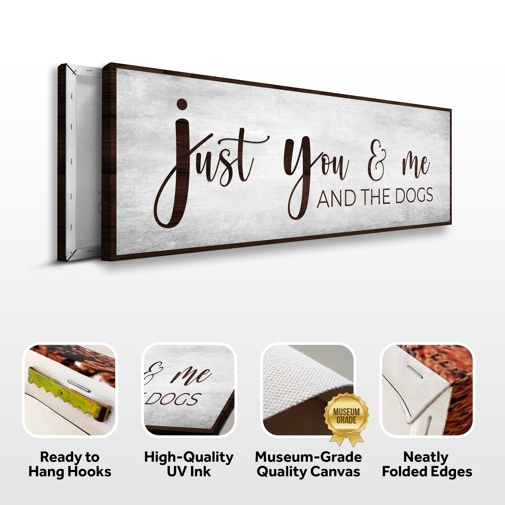 The printed design of this Just You, Me, And The Dogs wall art is printed using UV-resistant ink on a thick premium canvas. The Just You, Me, And The Dogs canvas wall art are ideal for creating an artistic ambiance in your living room or dining room area. Visit our collection choices of Just You, Me, And The Dogs sign right now to pick a size that best suits you and your home.